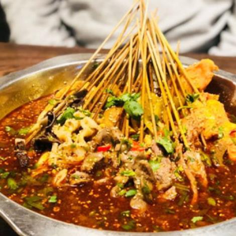 介家有料串串香选用的都是优质食材,汤底香辣气息十足,非常入味!介家有料串串香上桌的时候,被热辣的红油和芝麻粒覆盖着,令人垂涎三尺!除了传统的红糖冰粉外,介家有料串串香还有玫瑰冰粉,吃起来冰冰爽爽,香气十足,瞬间解辣!豌豆小面,小面做的真的很不错,豌豆很足,并且口感是脆脆的,小面口味正,够麻够辣。
